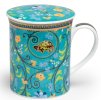 Pestrý páv na porcelánovém hrnku se sítkem a pokličkou je ten pravý pro přípravu čaje.